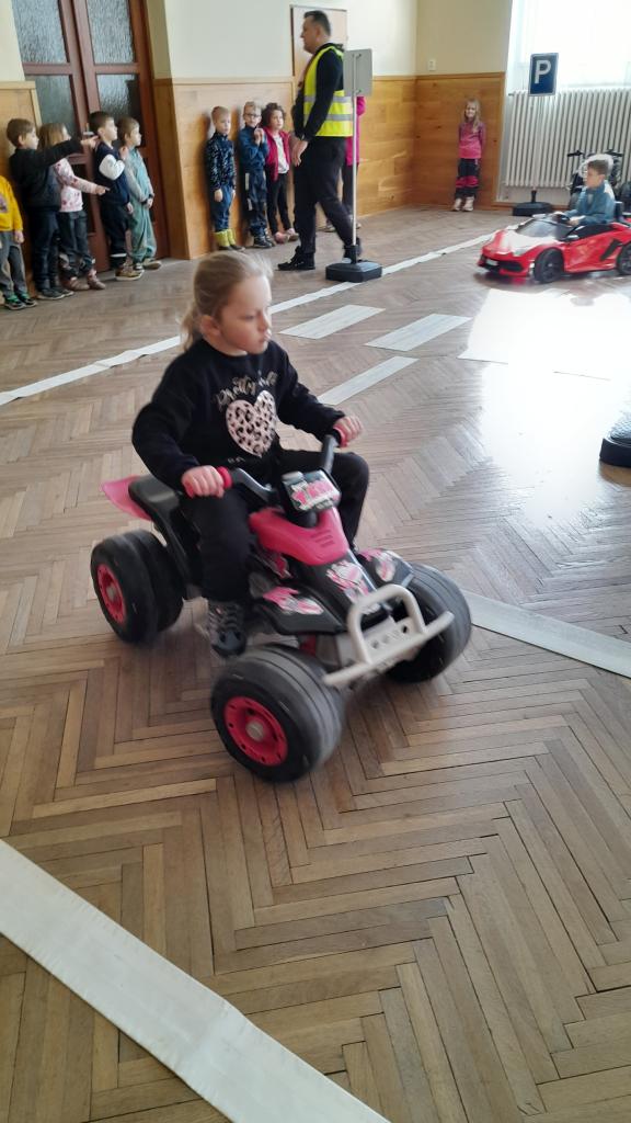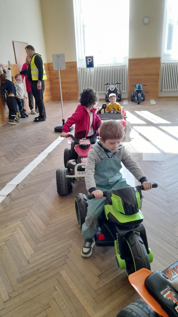Starší děti se v roli řidičů musely řídit základními dopravními předpisy a značkami. Policisté "pokutovali" každý přestupek. Čtyři nelepší řidiči, kteří nedostali ani jednu "pokutu" si zasloužili pochvalu a potlesk.