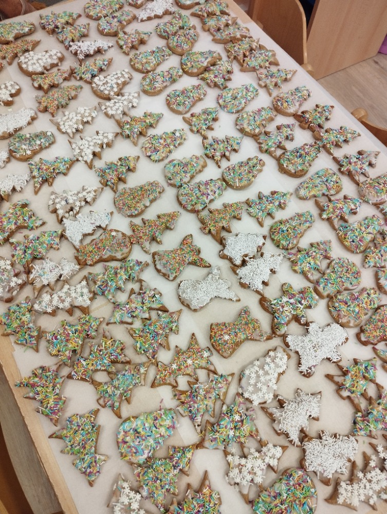 Hotovo. Perníčky jsou nazdobené a budou se prodávat při slavnostním rozsvícení vánočního stromu. Opět děkujeme kosteleckým babičkám za pomoc.
